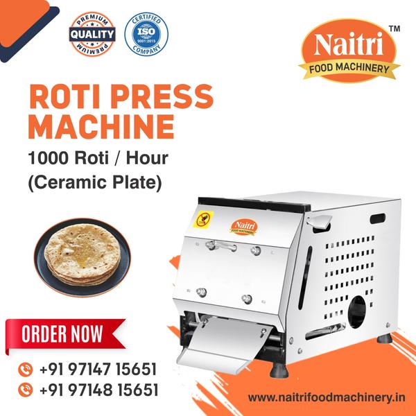 Pressing machine improves the existing productivity of chapatti press operations and produces 900-1000 ready-to-cook chapattis in a single hour. With the high temperature we can cook the roti in less time that helps to save the fuel and manpower. Same machine is used to make puri, parathas and thepla. Machine is used in live kitchen, live counter, hostels and langar.